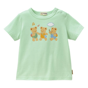 三匹のベアの通園風景を描いた半袖Tシャツです。