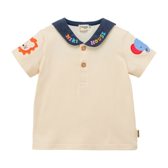 パイルジャカード生地のアイテムと連動し、セーラー衿部分の動物たちもパイルにしています。