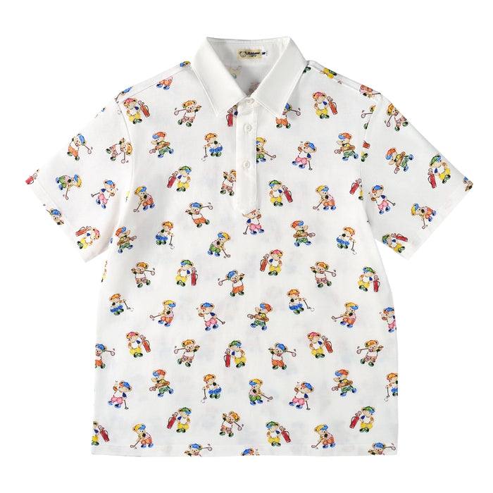 ゴルフを楽しむミキハウスベアの総柄プリントでミキハウスらしい一枚です。
