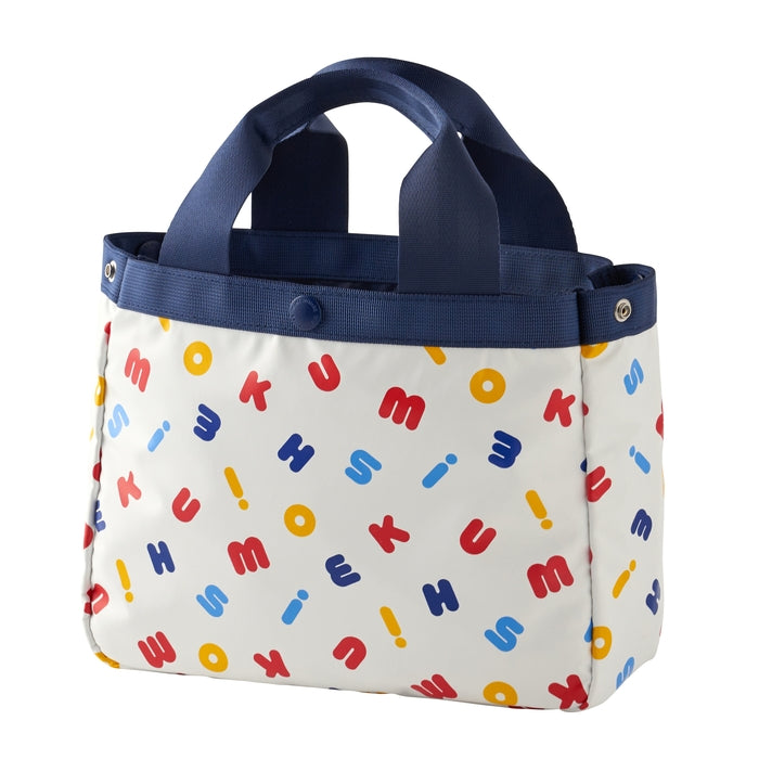 カラフルなミキハウスのロゴを散りばめたお子さまらしい元気なデザインで、夏のお出かけにピッタリ。