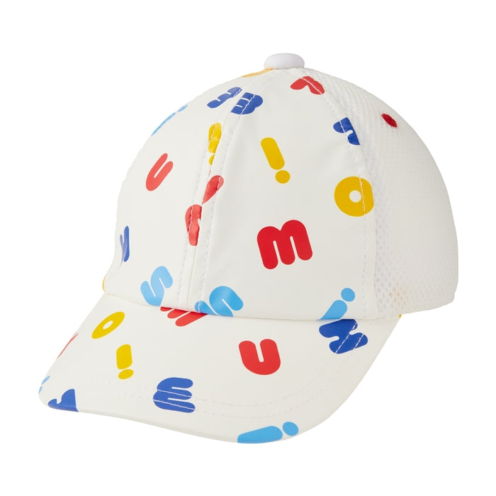 カラフルなミキハウスのロゴを散りばめたお子さまらしい元気なデザインで、夏のお出かけにピッタリです。