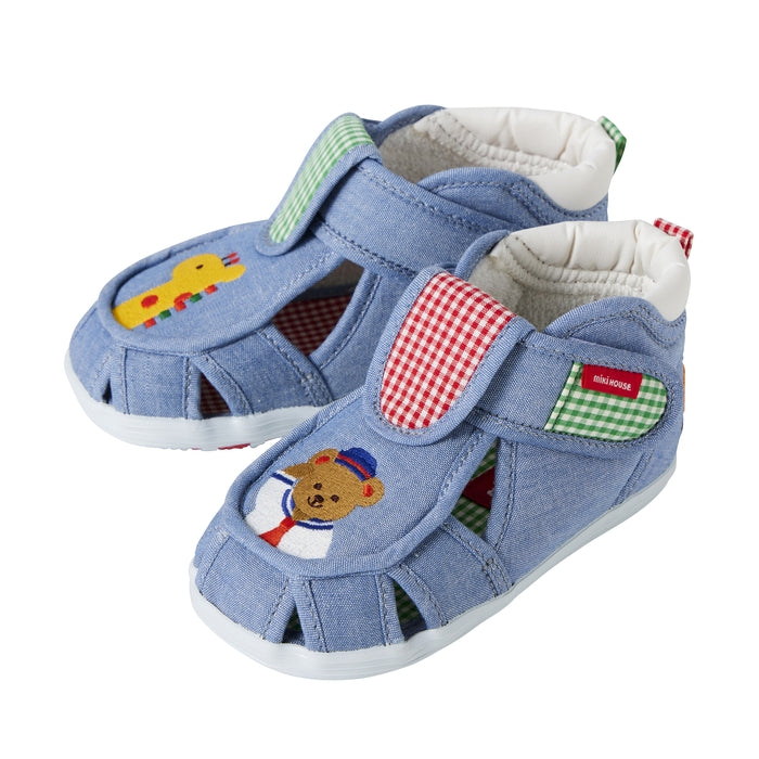 ダンガリー素材が爽やかなクラシックベアシリーズのベビーサンダルです。