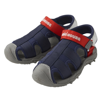 丈夫なテープ地で甲の部分をカバーしたキッズサンダルです。