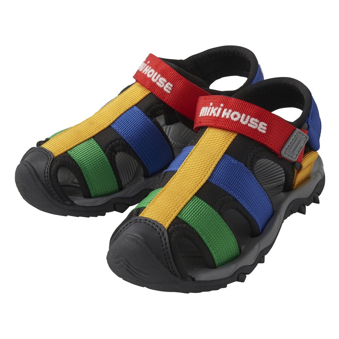 丈夫なテープ地で甲の部分をカバーしたキッズサンダルです。