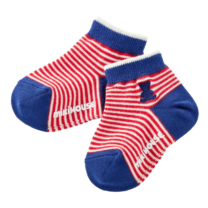 細かい微塵ボーダーと、つま先・かかと・履き口までカラフルでお子さまらしいアイテム。