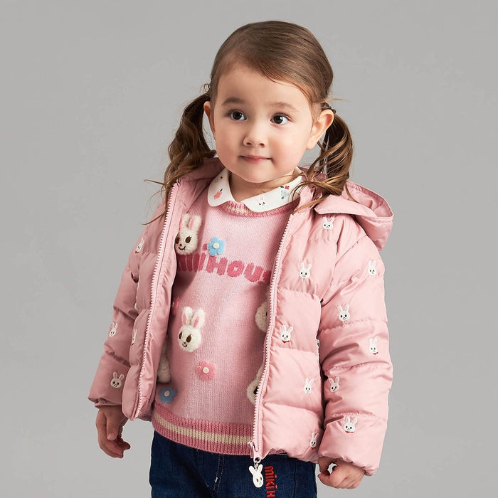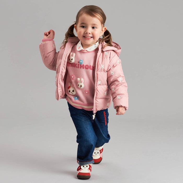 ミキハウスが厳選したダウンを使用し、贅沢に刺繍を施したダウンジャケット。