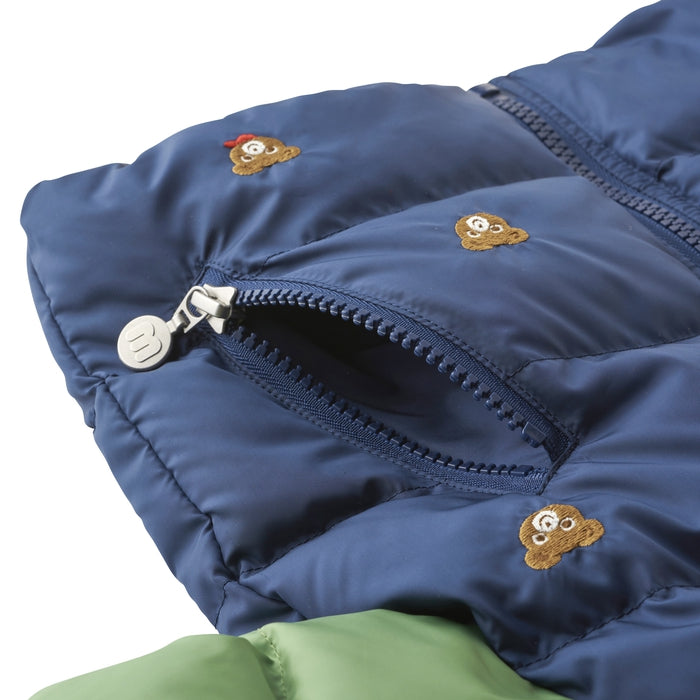 この製品には、ミキハウスが厳選した上質なダウンを使用しています。弾力性に優れ、ふんわりとした柔らかさを保ち、軽くてとても暖かい。豊かで快適な着ごこちと、ぜいたくな風合いをお楽しみください。