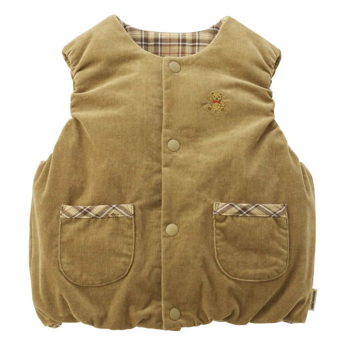 ミキハウスベアの刺繍が施されたリバーシブルベストです。