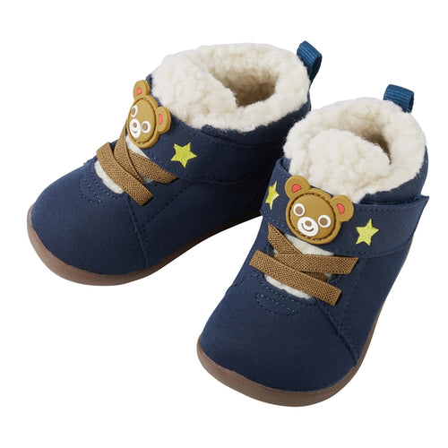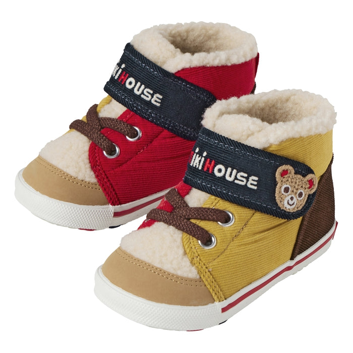 もこもこな見た目もかわいく、甲ベルトのmikihouseロゴやキャラクターのお顔がお子さまらしいシューズです。
