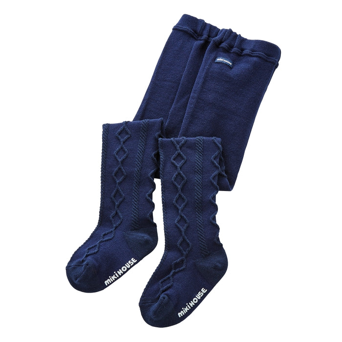 寒い季節に使いやすい大きめなケーブル織り柄のシンプルなタイツです。