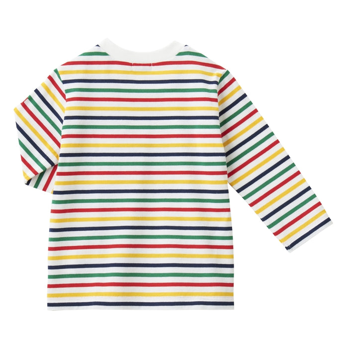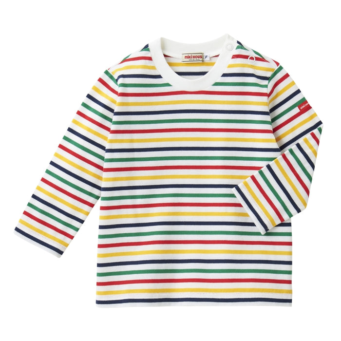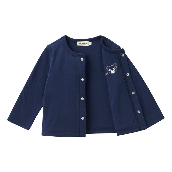 カーディガンが紺になり、胸元のキャラクターモチーフが前よりも大きくなり、ロゴをプラスしたことでミキハウスらしさがさらに増えました。