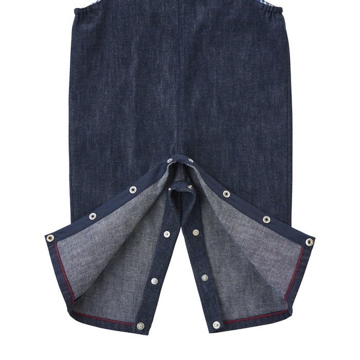 - (オーバーオール)先染デニム (格子部分)先染ギンガム