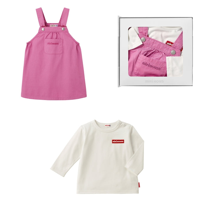 カラーリング豊富で、遊び心あふれる「WEB LIMITED」アイテムのジャンパースカートと、ワッペンロゴ長袖Tシャツをギフトセットにしました。