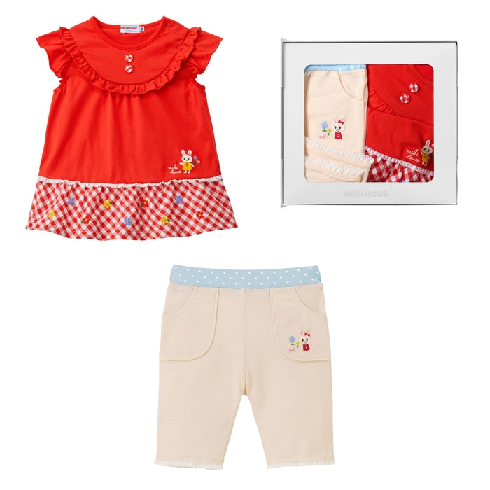 かわいいうさこがポイントになった、チュニック風の半袖Tシャツと6分丈パンツをギフトセットにしました。