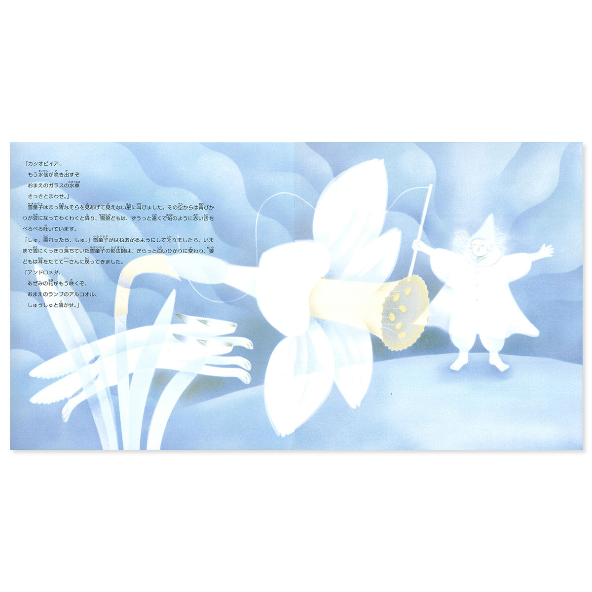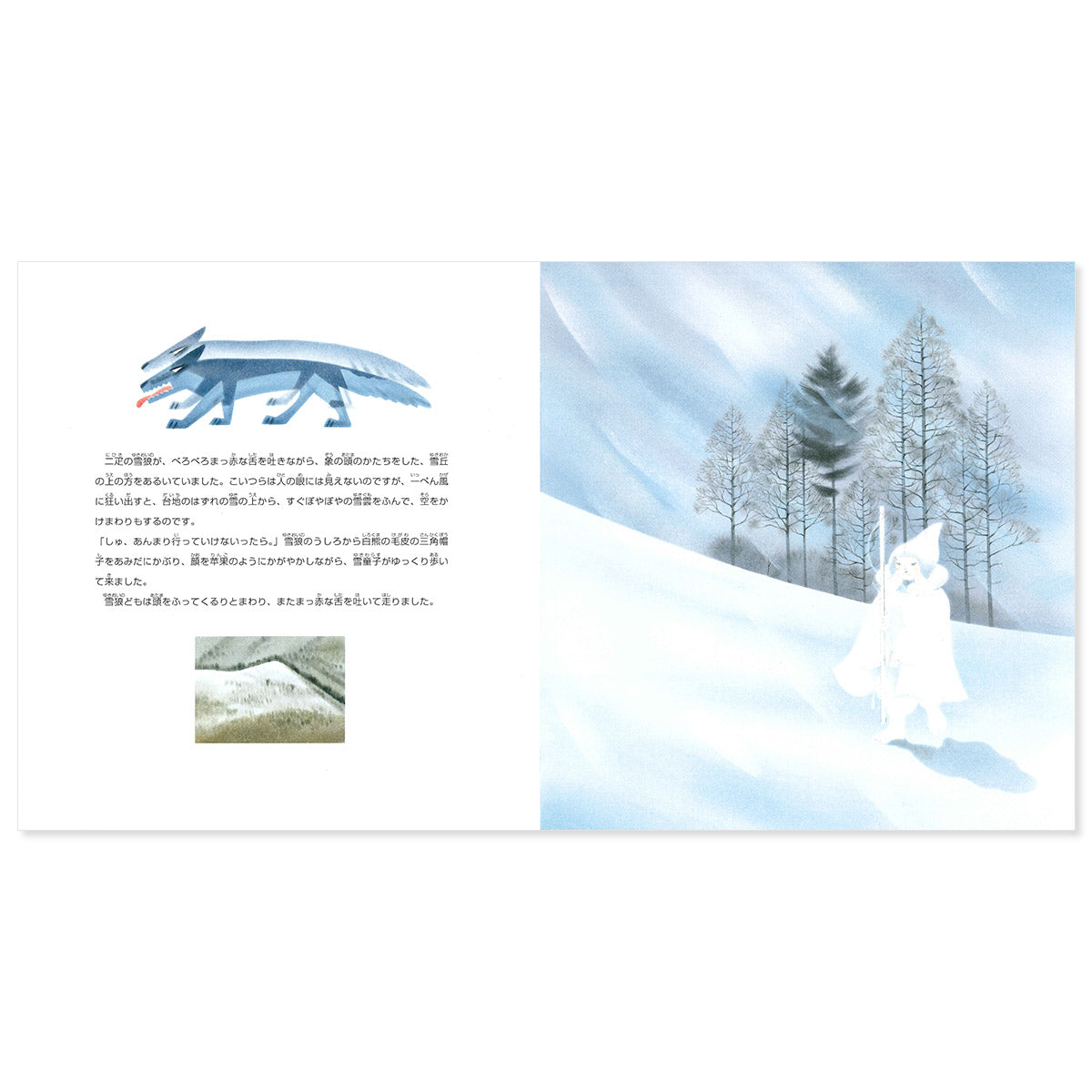 春の訪れを告げる雪嵐の中、死にかける子どもを見つける雪童子。その子は、雪童子がぷいっと投げつけたヤドリギの枝を拾った子どもでした。仲間に悟られないよう助けようとする雪童子のおかげで、子どもは無事に朝を迎えることができるのでした…。