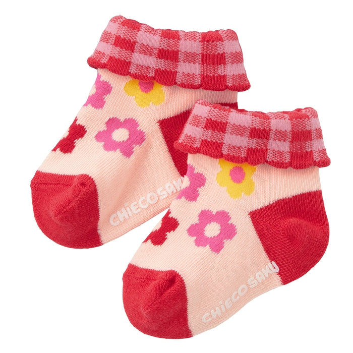 チエコサクコーデにさらに愛らしさを添えてくれるソックスです。チエコサクのチェックとお花のかわいいデザインです。チエコサクチェックシリーズと合わせて統一感のあるコーディネートに仕上がります。