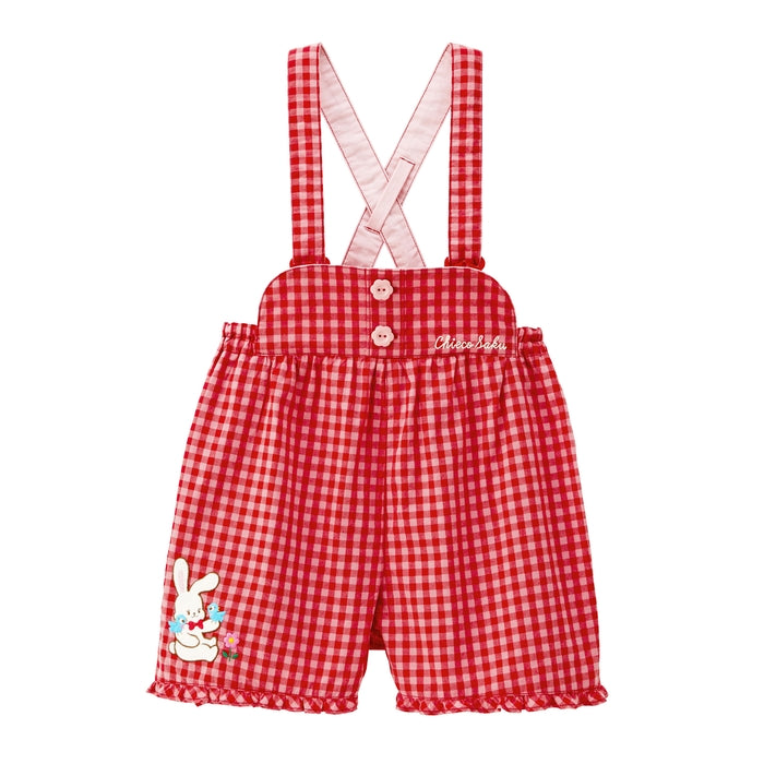 爽やかなギンガムチェック柄の5分丈オーバーオールです。女の子らしく着られるシルエット。夏場の汗をかきやすい時期にもおすすめです。
