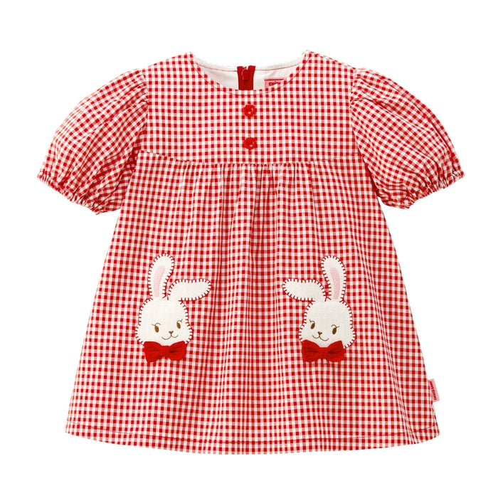 ギンガムチェック柄がかわいいチュニック(半袖)です。同シリーズのかぼちゃ風パンツやレギンスとのコーディネートもおすすめ。