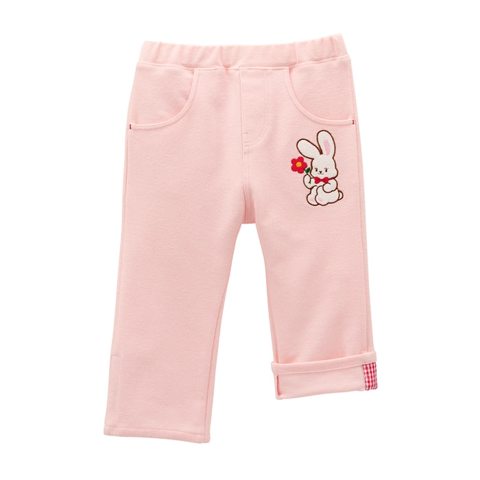チエコのワンポイント刺繍が付いたパンツです。通園・通学などにも便利なシンプルアイテム。