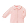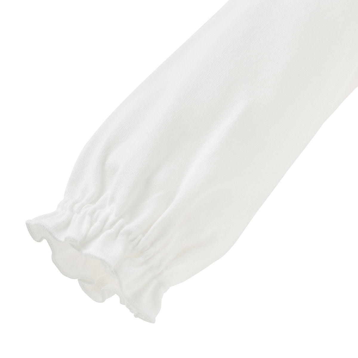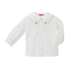 秋冬春と着ていただける天竺素材のブラウスです。セーラーカラーがとても愛らしく、トレーナーやカーディガンと合わせると、上品でかわいらしい印象です。襟の前部分には、チエコの刺繍をあしらいました。いろいろなトップスのインナーとしても活躍してくれるブラウスです。