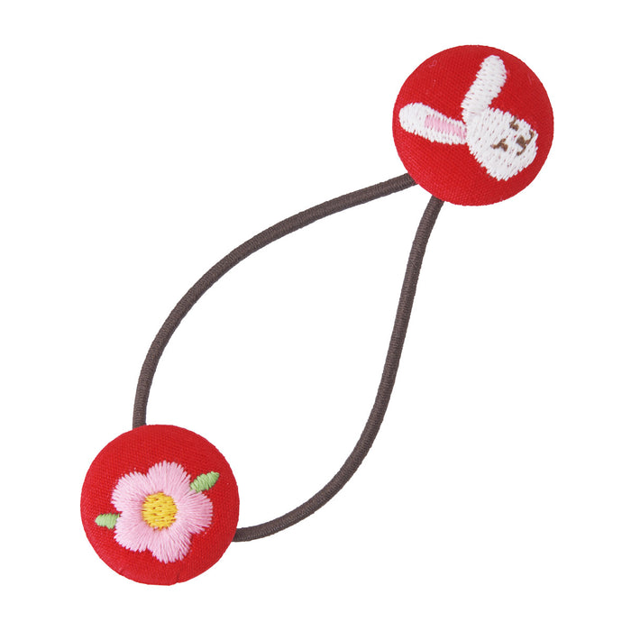 チエコサクのシンボル、うさぎのチエコのモチーフとお花のヘアゴムです。それぞれのモチーフは、職人がハンドメイドで、ひとつひとつ丁寧に仕上げています。チエコのあたたかみのある愛らしい表情は、手作りならではです。ヘアアクセサリーとしてはもちろん、ぬいぐるみやバッグ、ブレスレットとしてなどとしても楽しんでいただけます。