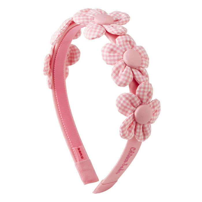 ピンク色の空に浮かぶ、お花のようなふわふわのピンク色の雲に乗って遊ぶチエコをイメージしたシリーズのカチューシャです。ピンクのギンガムチェックで作ったお花の立体モチーフが、お顔まわりをぱっと華やかに演出します。ギンガムチェックのアイテムと合わせて、統一感のあるコーディネートもおすすめ。