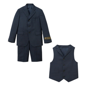 上質な素材を贅沢に使用したスリーピース・スーツは、上品でベーシックなスタイリングながら、観音仕立ての背抜き、剣先台場仕様の内ポケット、本水牛のボタンなど、ディティールにもこだわった本物志向の逸品です。
