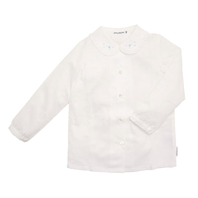ピケ素材のさらっとした着心地のブラウスです。フリルが付いた襟にポイント刺繍がオシャレですね。袖口は一部がゴムになっているので、お子さまも動きやすいですよ。ジャンパースカートの重ね着にピッタリ。ボレロと組み合わせてフォーマルスタイルにもどうぞ。