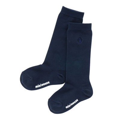 同色のロゴ刺しゅうが上品なハイソックスです。