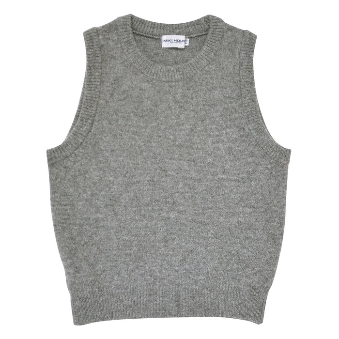 上質なラムウールを100%使用した丸襟がやさしく女の子らしいベストです。