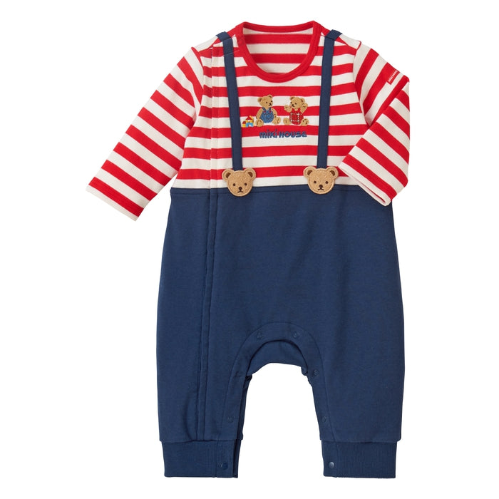 セパレート風デザインのボーダーカバーオールです。現代のママの声から登場したファスナー仕様のアイテムです。