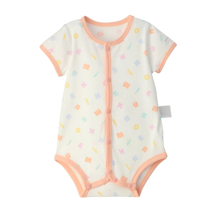 一年中いつでも快適に着ていただけるフライス素材の半袖ボディシャツです。男女問わず着られる人気のベアとパステルロゴのプリント柄です。インナーとして使えるボディシャツ。短肌着・コンビ肌着を卒業したら便利なのが、ボディシャツです。