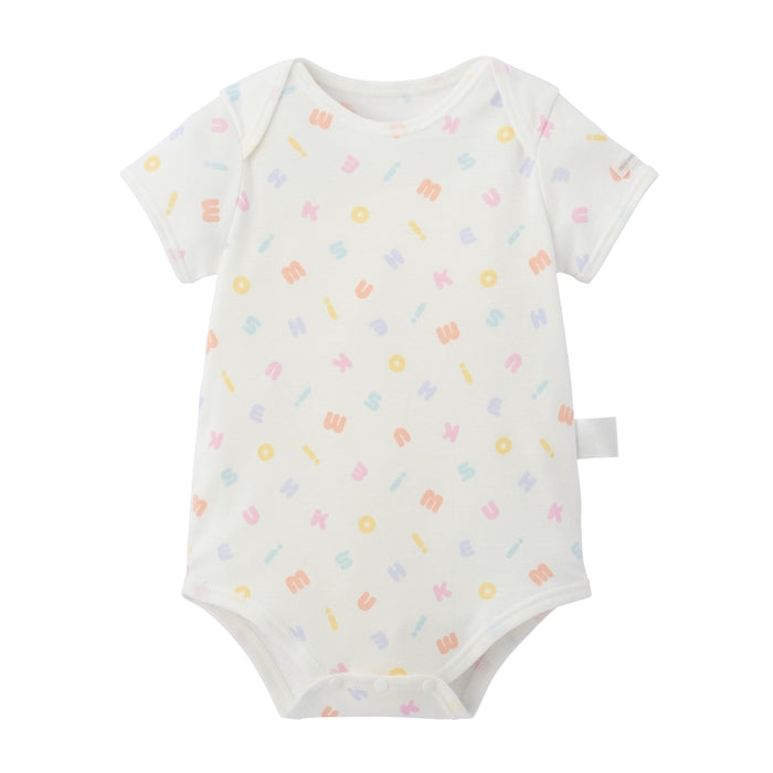 一年中いつでも快適に着ていただけるフライス素材の半袖ボディシャツです。男女問わず着られる人気のベアとパステルロゴのプリント柄です。インナーとして使えるボディシャツは、短肌着・コンビ肌着を卒業したら便利な肌着です。