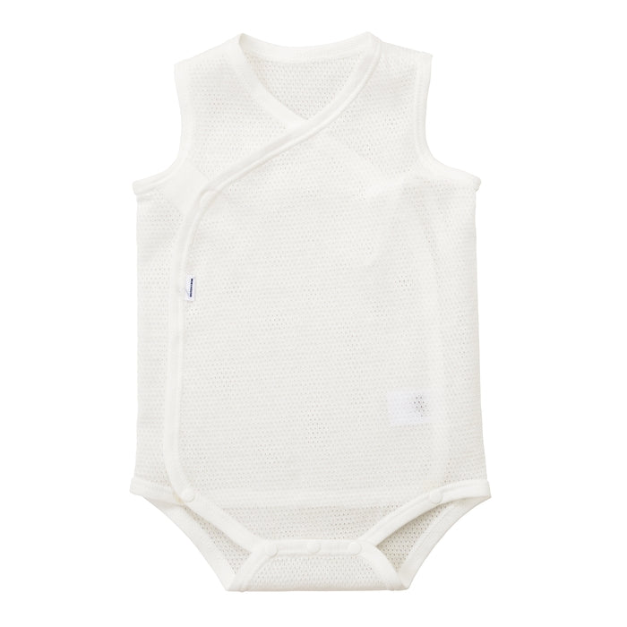 夏におすすめメッシュ天竺素材のノースリーブボディシャツ肌着です。暑い夏に気持ちいい、通気性に優れた肌触りのよい肌着です。