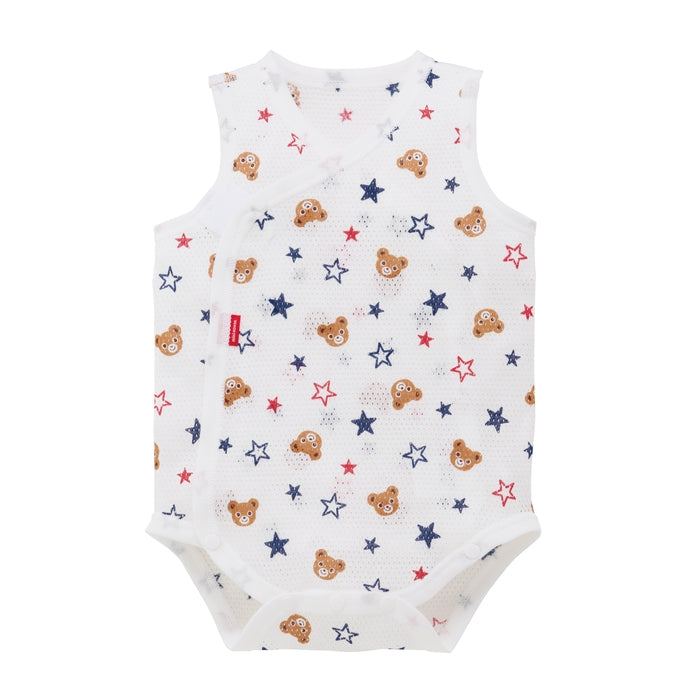 夏におすすめメッシュ天竺素材のノースリーブボディシャツです。インナーとして使えるボディシャツ。暑い夏に気持ちいい、通気性に優れた肌触りのよい肌着です。