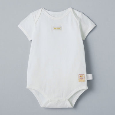 海島綿ニットガーゼ素材の半袖ボディシャツ(ロンパース)。