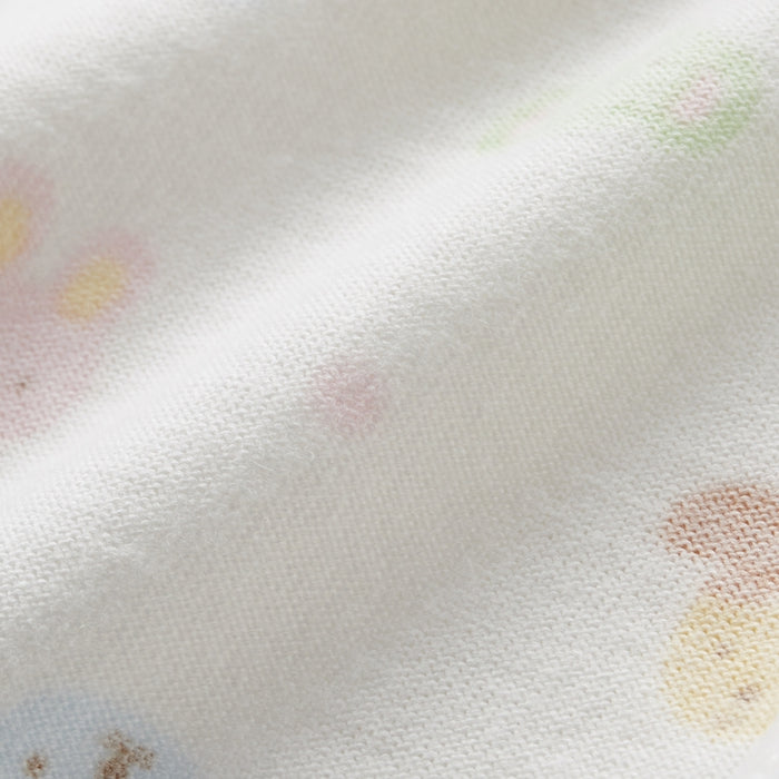 口腔内の洗浄・消毒に使われている成分をベースに開発された安全性の高い固定化抗菌成分「Etak®(イータック)」を生地にしっかりと固定させることで、繊維上の特定の細菌の増殖を抑制し、特定のウイルスの数を減少させます。コットンの心地よい風合いをそのままに赤ちゃんをやさしく包みます。