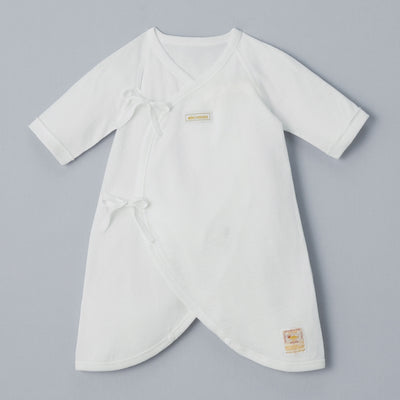 生まれてすぐから着られる肌着、海島綿ニットガーゼ素材のコンビ肌着です。