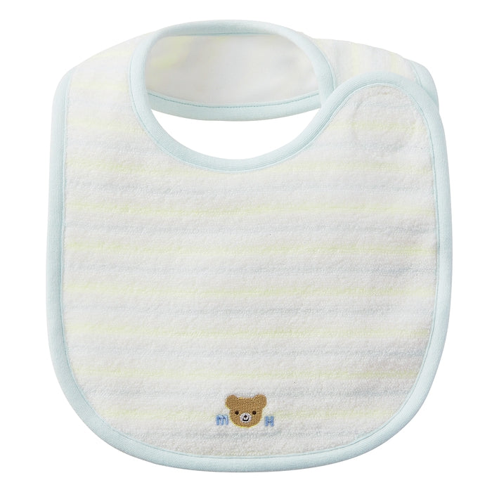 やわらかな無撚糸素材のスタイです。無撚糸アイテムと一緒に出産準備や出産祝い、プレゼントに便利なベビーアイテムです。