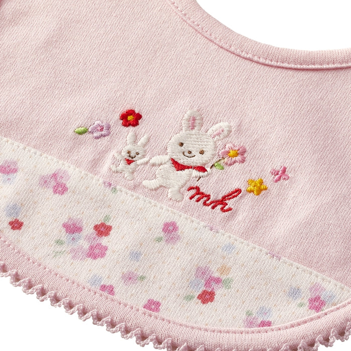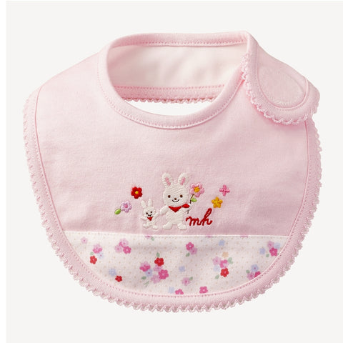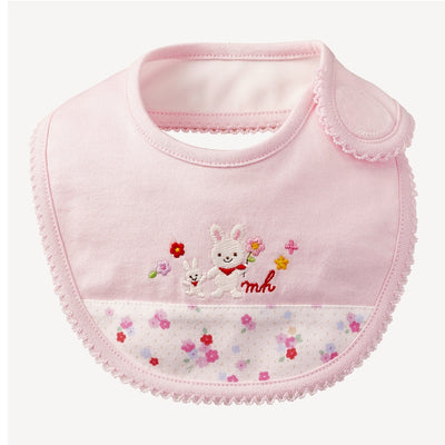うさぎと小花柄がかわいらしいデザインのスタイです。出産準備や出産祝い、プレゼントに便利なベビーアイテムです。お出かけ用にもおすすめ。