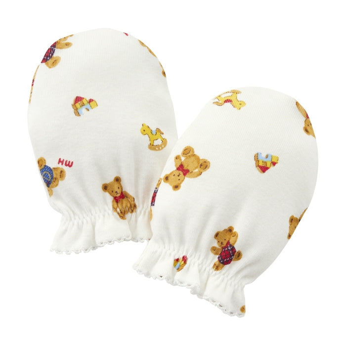 ミキハウスベア柄とパステルロゴ柄の新生児用のミトンです。お揃いのブーティ・フードと一緒に出産準備や出産お祝い、プレゼントに便利なベビーアイテムです。生まれてきた記念にもおすすめ。