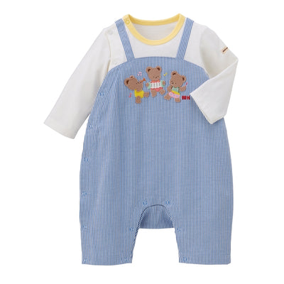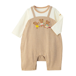 ベア達の演奏が聞こえてきそうな楽しいデザインのカバーオール(長袖ロンパース)です。股下7分丈で春先から着用でき、出産準備や出産お祝いにおすすめです。