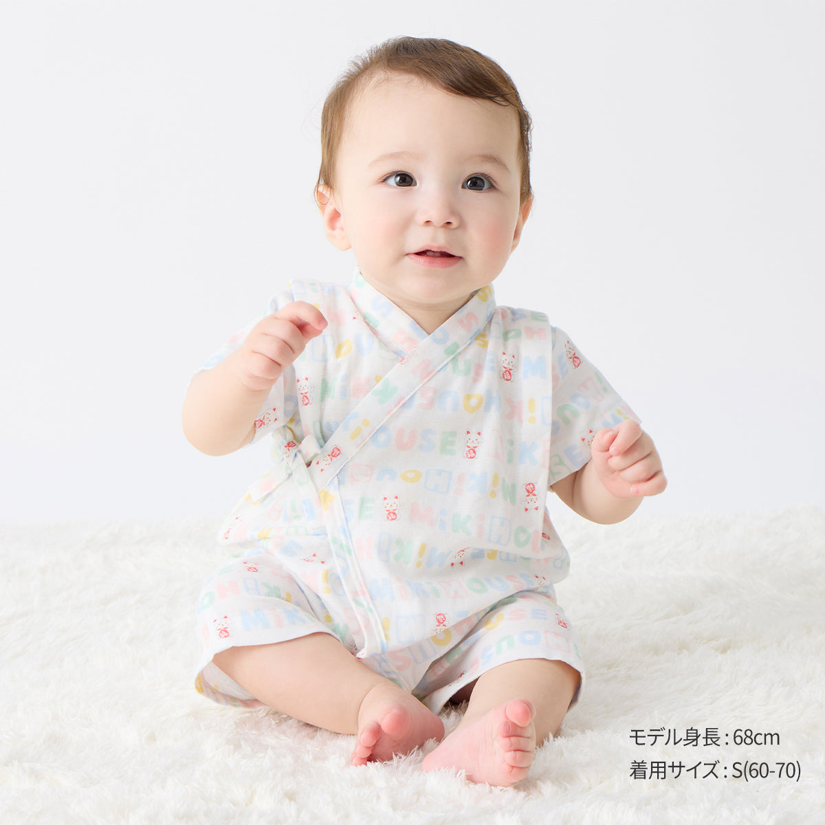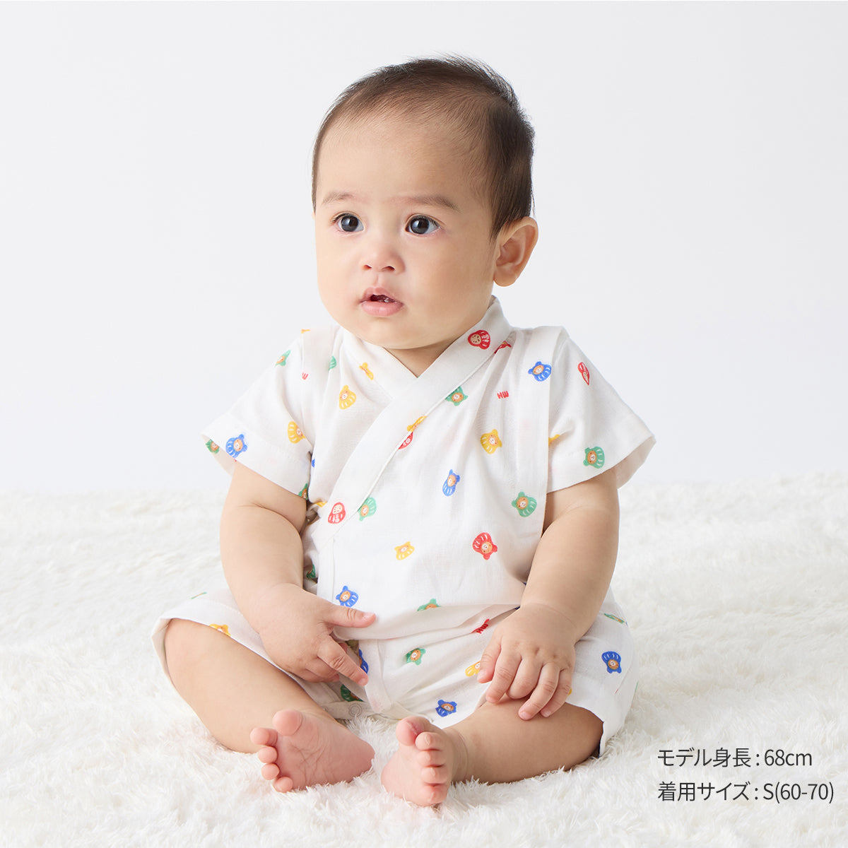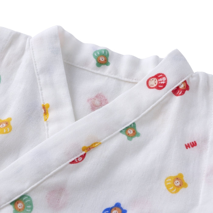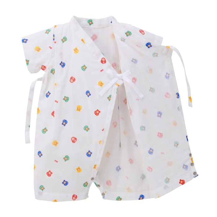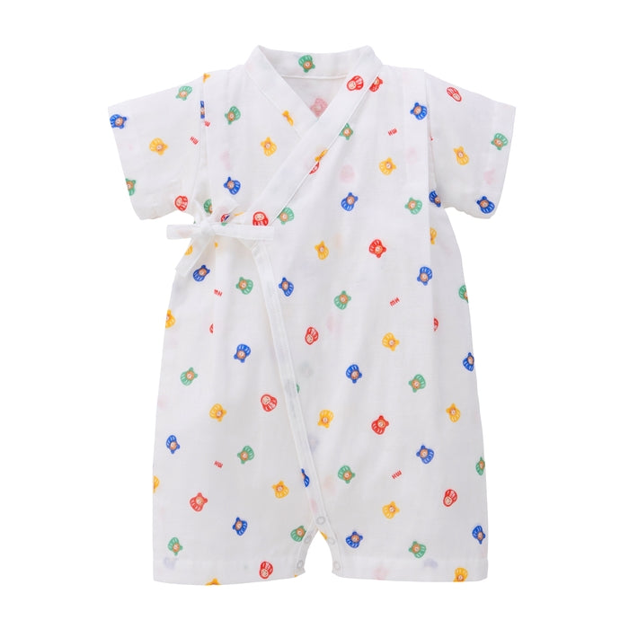 まねき猫柄と福だるま柄の甚平オールです。日本らしい縁起のいい柄は、出産お祝いやプレゼントにもおすすめ。甚平オールは、ねんねの赤ちゃんにとってメリットの多いアイテム。夏のベビーパジャマとしても人気のベビーウエアです。