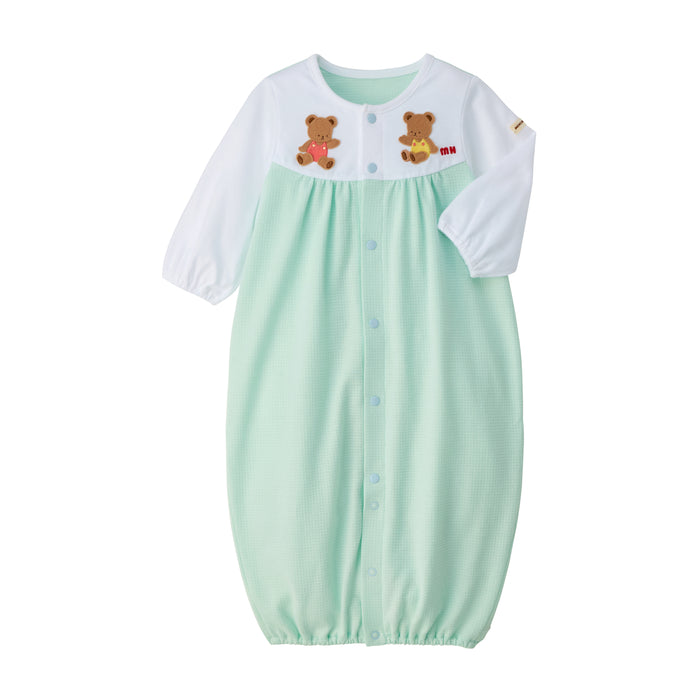 ワッフル素材のツーウェイオールです。生まれてから6か月くらいまで着用できる出産準備の必需品です。出産準備や出産お祝い、プレゼントに便利なアイテムです。