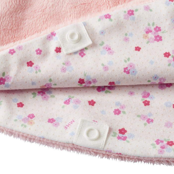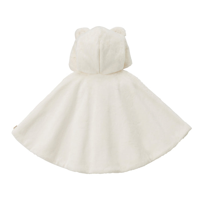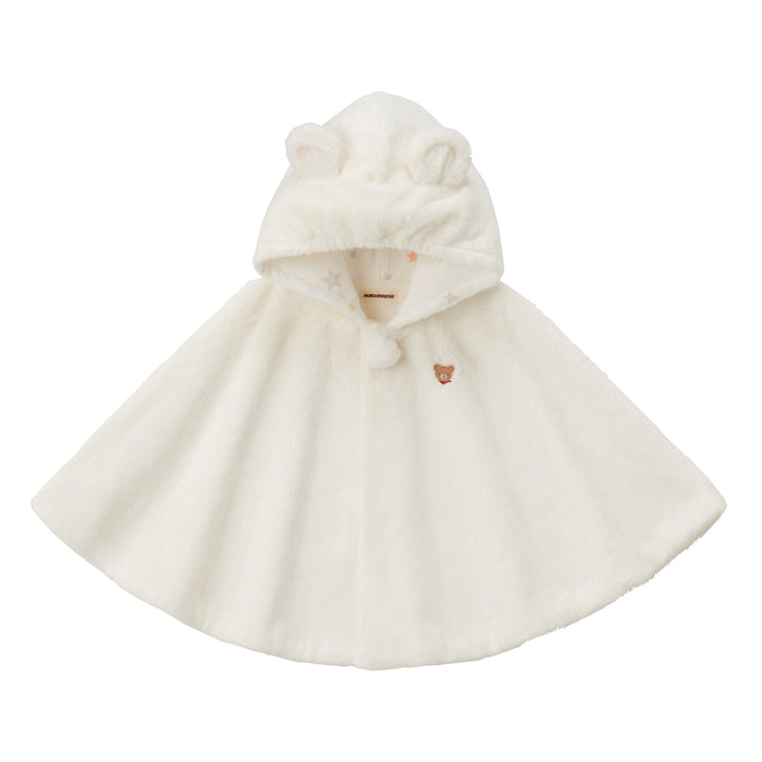 とても暖かいマイクロファー素材の防寒マントです。人気のマイクロファーシリーズは、出産祝いなどのプレゼントにおすすめ。心地よく着用でき、寒い時期のお出かけに便利なベビーアイテムです。