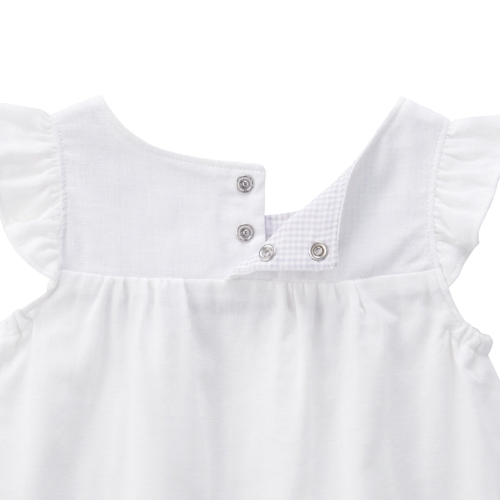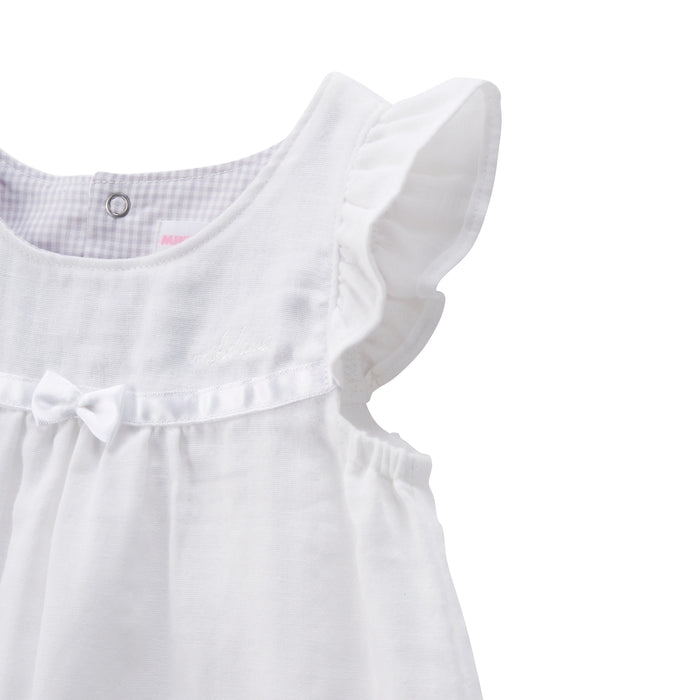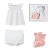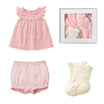 清楚で上品なデザインのワンピース・ハーフパンツ・ベビーソックスをギフトセットにしました。