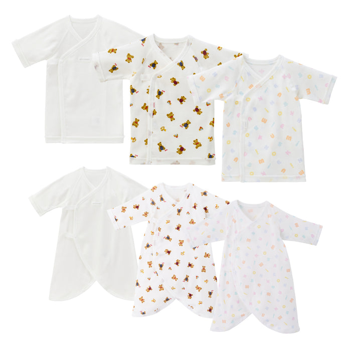 ・短肌着3点、コンビ肌着3点、計6枚セット