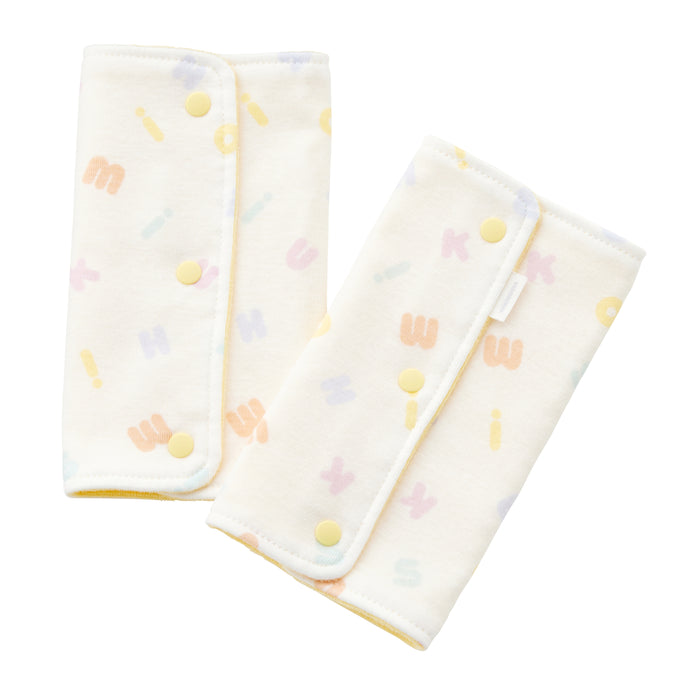 ベビーキャリアの肩紐に取り付けるベルトパッドです。肩紐に取り付けて、赤ちゃんのよだれをしっかりガードします。汚れても簡単にお洗濯ができ、ベビーキャリアの肩紐を衛生的に使える便利アイテムです。