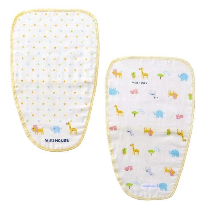 ダブルガーゼ素材の汗とりパッドです。背中と肌着の間にパッドを入れ、後ろの襟元から先を襟のように出して使います。赤ちゃんの背中に入れやすいように、手をいれるポケット付き。蒸し暑い季節に便利なアイテムです。