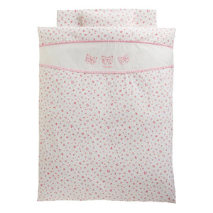 リボン刺繍とフリルがキュートな小花柄の布団カバーセットです。